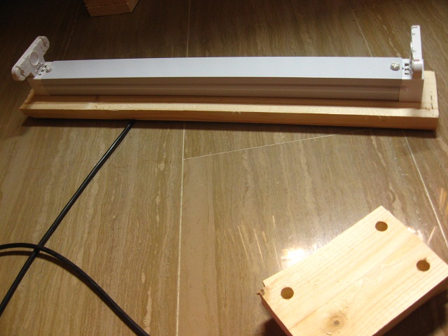 Si tratta di una plafoniera a tubi led. Mentre non è un problema trovarla in vendita (ad esempio, io ho preso le mie qui: http://www.tecno-eshop.it/categoria-Tubi_LED-154.html ), la domanda è: come fissarla sopra le piante? Ovviamente possono esserci tante idee, ma quello che è venuto in mente a mio marito e me, è questo: