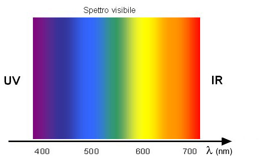 Le diverse lunghezze d’onda costituiscono lo spettro di luce, di cui solo una piccola parte (da 380 a 750 nm) è visibile all’occhio umano che la distingue in forma di colori.