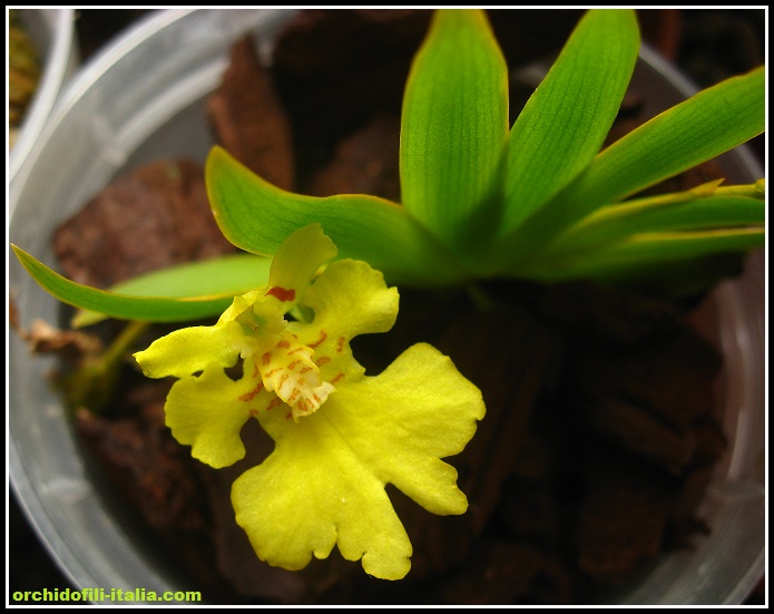 La Erycina pusilla, conosciuta anche come Psygmorchis pusilla, è un’affascinante miniatura proveniente dal Messico, Colombia, Nicaragua, Costa Rica, Ecuador, Perù, Panama, Trinidad, Venezuela, Surinam, Bolivia, Brazil e Guyana Francese. Cresce come epifita sui rami sottili degli alberi nelle foreste calde e umide ad un’altitudine di 400-950 metri. È un’orchidea simpodiale, ha una curiosa forma a ventaglio; le crescite nuove si sviluppano lungo un corto rizoma. Le foglie arrivano fino a 8 cm in lunghezza.