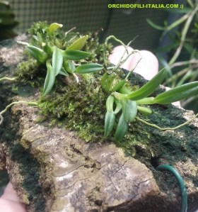 Consiglio vivamente di montarla su una zattera con muschio vivo intorno alle radici (che con il passare del tempo le ricoprirà), specialmente se siete in possesso di un orchidario. Questa specie ama l’umidità ma odia i ristagni d’acqua, per cui io personalmente ho trovato la sua coltivazione in vaso impossibile: era o troppo bagnata, o troppo secca. Se comunque optate per un vaso, dovrete osservare attentamente le condizioni della pianta per alcune settimane per poter notare gli eventuali segni di stress al più presto e aggiustare le bagnature. Come substrato in questo caso consiglierei lo sfagno a fibra grossa.