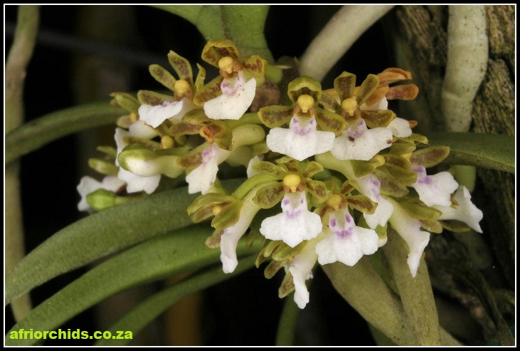 Questa stupenda e rara miniatura è endemica del Java occidentale. È veramente adorabile; i suoi fiori quasi trasparenti sembrano fatti di ghiaccio! In natura cresce sugli alberi nei boschi umidi, preferendo le zone abbastanza esposte al sole. È monopodiale, le sue foglie arrivano fino a 2.5 cm in lunghezza.
