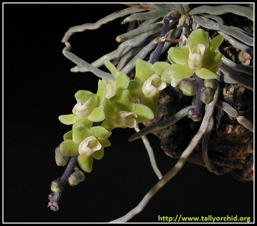Per ora è l’orchidea più piccola della mia collezione, e allo stesso tempo più prolifica e rigorosa. 🙂 Questa bellissima miniatura è endemica delle zone centrali dell’Ecuador, e si trova nei boschi montani umidi ad un’altitudine di 450-1200 metri. È simpodiale, consiste di piccoli steli, ognuno finisce con una fogliolina al massimo di 1,5 cm in lunghezza. Si adatta molto bene alla coltivazione in casa, ed ha una crescita veloce e stabile. In un anno la superficie coperta dall’esemplare ben sviluppato può anche raddoppiare.