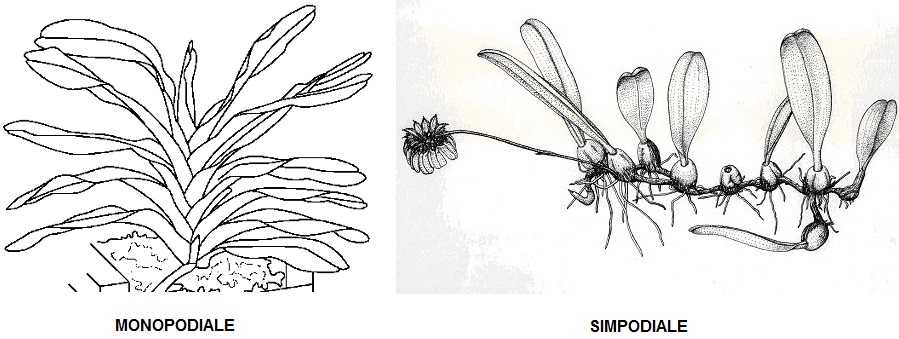 A seconda del tipo di crescita del fusto, un’orchidea può essere: