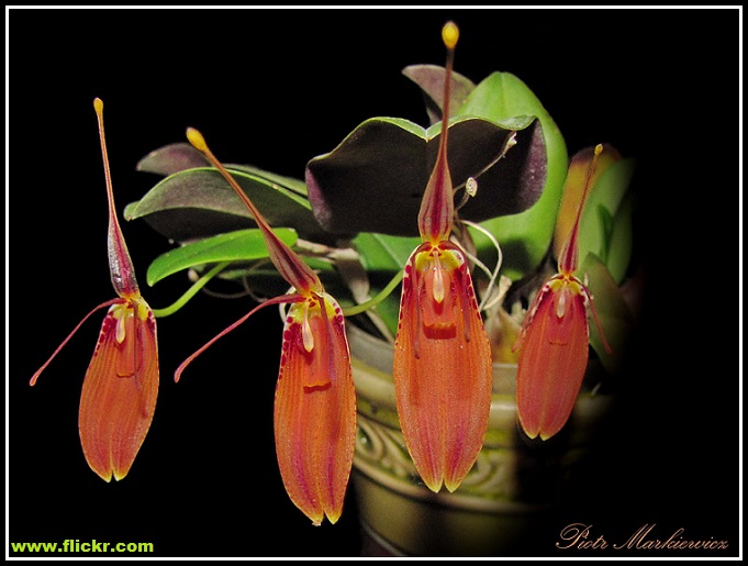 È la prima Restrepia della mia collezione. È entrata a farne parte poche settimane fa (grazie Riccardo!), ma sta già facendo un’infiorescenza. 🙂 Questa piccola specie colombiana è molto prolifica per quanto riguarda le fioriture, e date le condizioni adatte può fiorire anche tutto l’anno. In natura si trova nei boschi sulle montagne della Cordigliera Centrale (Cordillera Central in spagnolo) ad un’altitudine di 1600-1700 metri. È una specie simpodiale che consiste negli steli sottili che finiscono con una foglia di 4-6 cm in lunghezza.