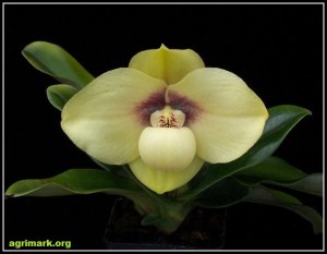 Non è possibile rimanere indifferenti quando si incontra un esemplare fiorito di questa specie. I suoi fiori stupendi raggiungono 12 cm in larghezza e sono pure leggermente profumati. La Paphiopedilum hangianum è abbastanza rara in natura, si trova in una zona limitata del Vietnam settentrionale ad un’altitudine di 450-750 m. Cresce sulle rocce verticali nei fitti boschi sempreverdi. È un’orchidea simpodiale, composta da rosette di 4-7 foglie lunghe fino a 30 cm.