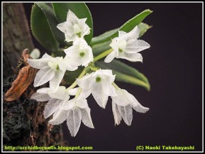 Questa stupenda e rara miniatura è endemica del Java occidentale. È veramente adorabile; i suoi fiori quasi trasparenti sembrano fatti di ghiaccio! In natura cresce sugli alberi nei boschi umidi, preferendo le zone abbastanza esposte al sole. È monopodiale, le sue foglie arrivano fino a 2.5 cm in lunghezza.